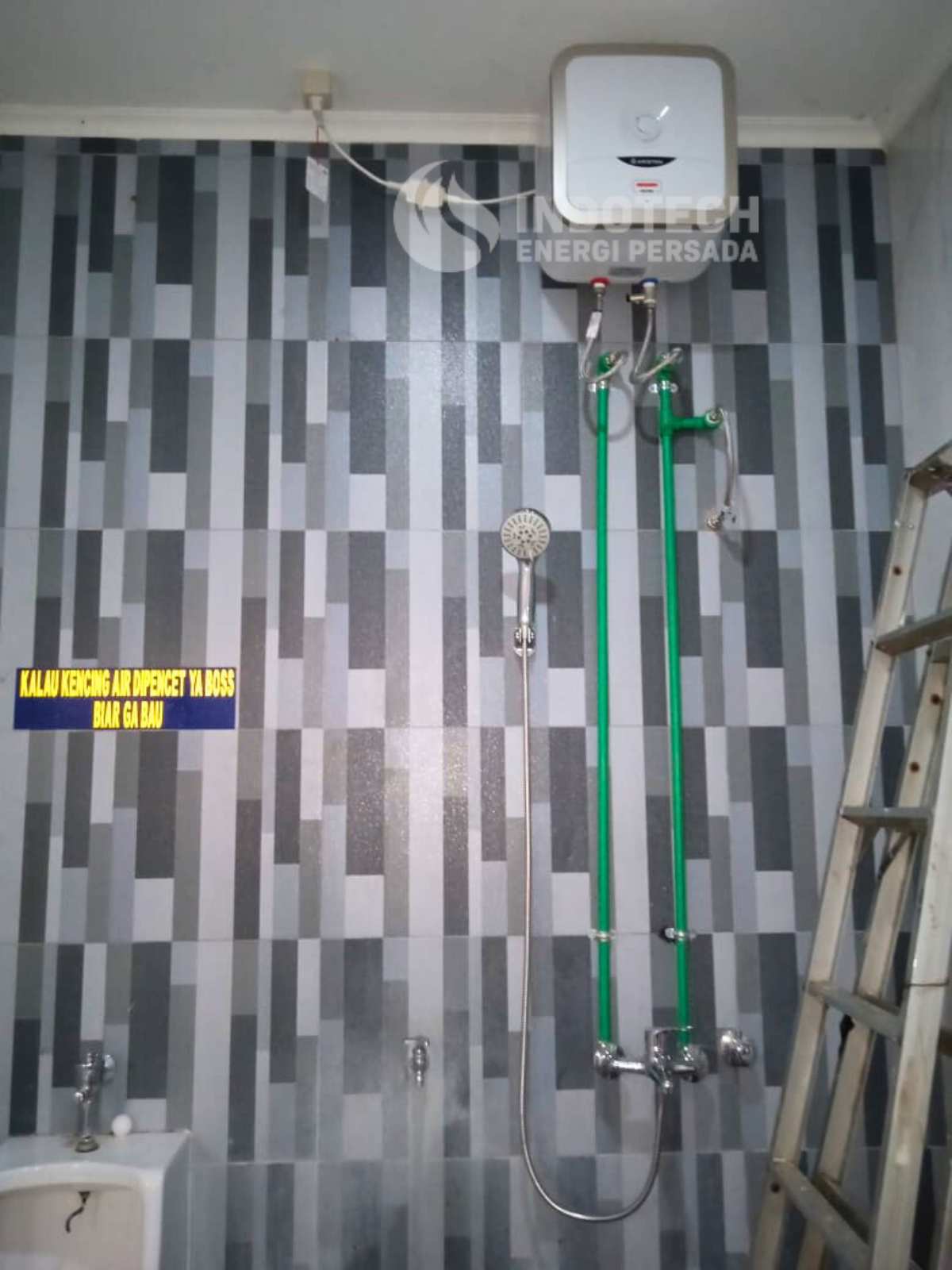 Project bongkar dan pasang Ariston electric water heater Andris2 15B 200ID di Gading Serpong, Tangerang, pada tanggal 11 Oktober 2023, sudah selesai dilakukan.
